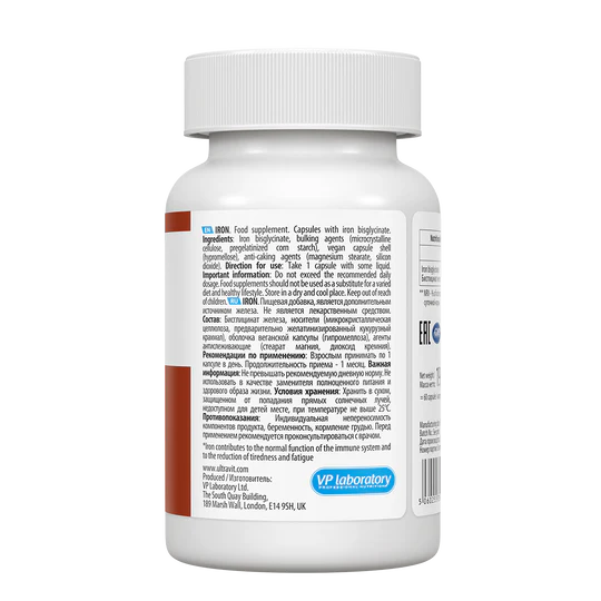 UltraVit's Iron is a crucial supplement for supporting energy production, immune system function, and neurological health. Formulated for high absorption and tolerability, each bottle contains 60 easy-to-swallow capsules of iron bis-glycinate, known for its effective delivery and minimal gastrointestinal side effects.